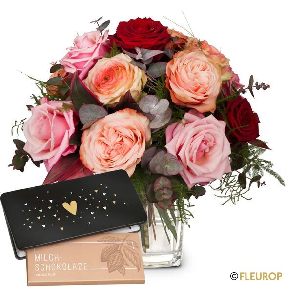 Romantic Roses with Munz bar of chocolate «Heart»